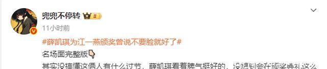 当薛凯琪看到最佳女配角的得奖者真的是江一燕时。 忍不住当众骂道:“原来是真的,不要脸就好了,四大名捕江一燕”。