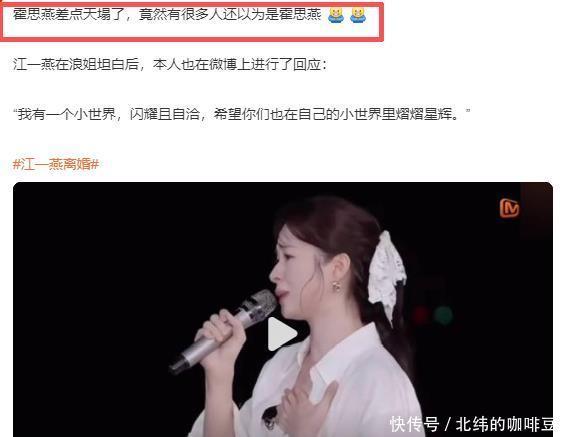 估计江一燕自己也没想到,自己离婚能获得这么高的热度,很大一部分原因,竟然是因为网友把她当成了霍思燕。